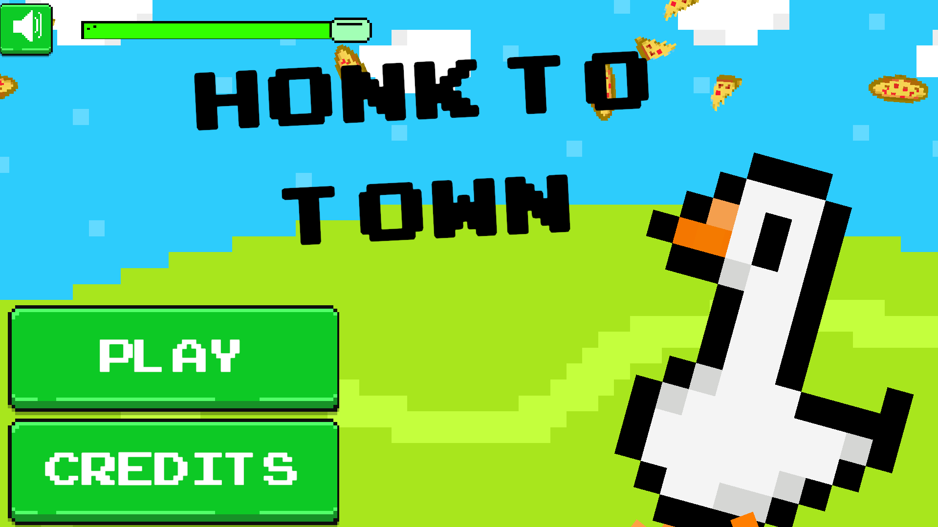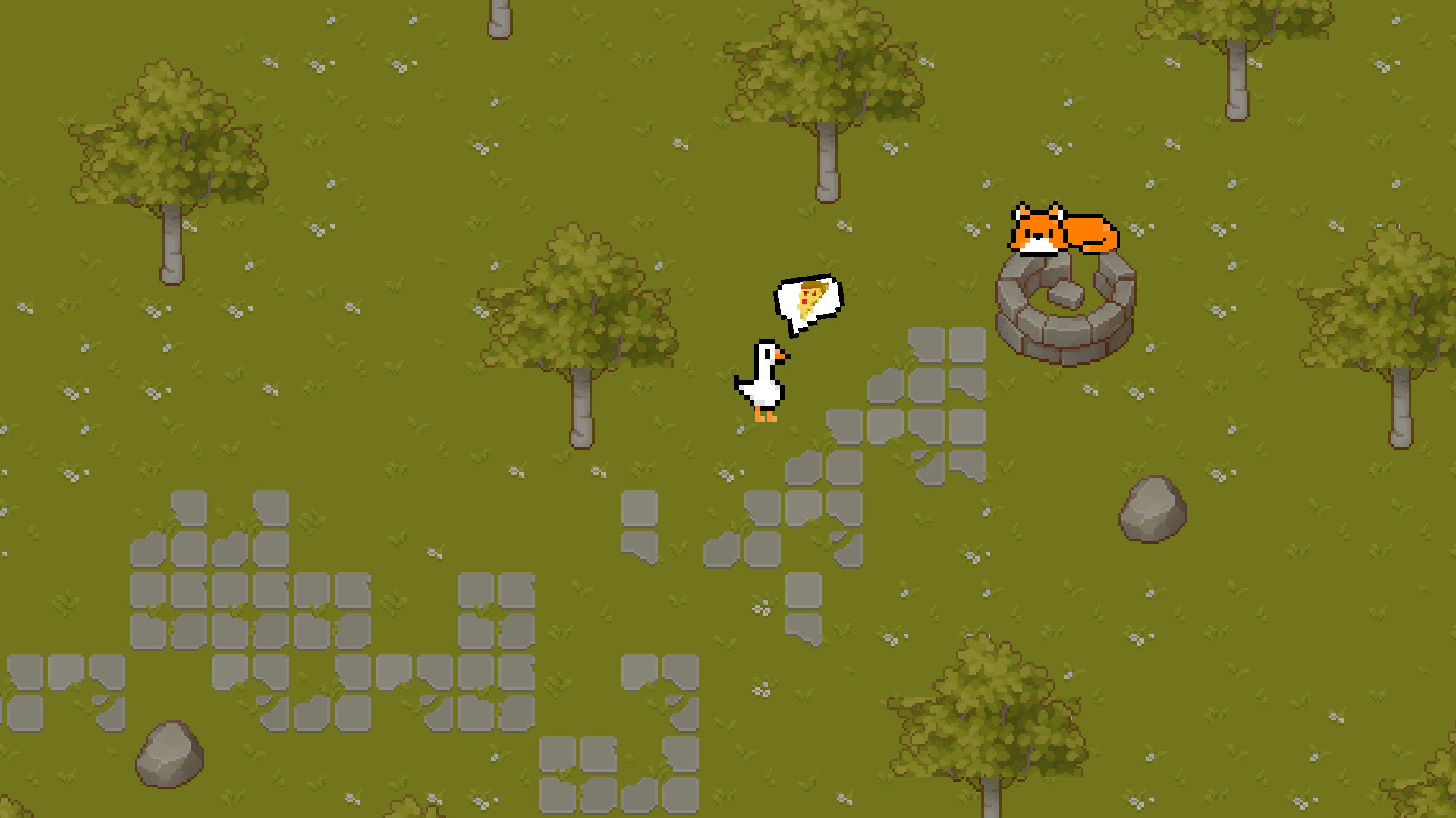 You are a goose. You can honk by pressing SPACE. You love pizza. You woke up in the middle of a forest, and somewhere nearby, there's a town holding a free pizza!