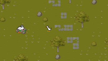 Navigate through the wilderness in this top-down adventure, honk at strangers, flip coins with foxes, and make choices that may or may not get you eaten. Every encounter has 3 options. All of them are valid. Some of them are fatal.
